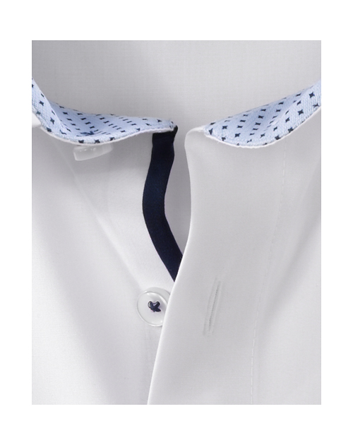 Barva košile: bílá, vnitřek límce a manžety modrý se vzorkem