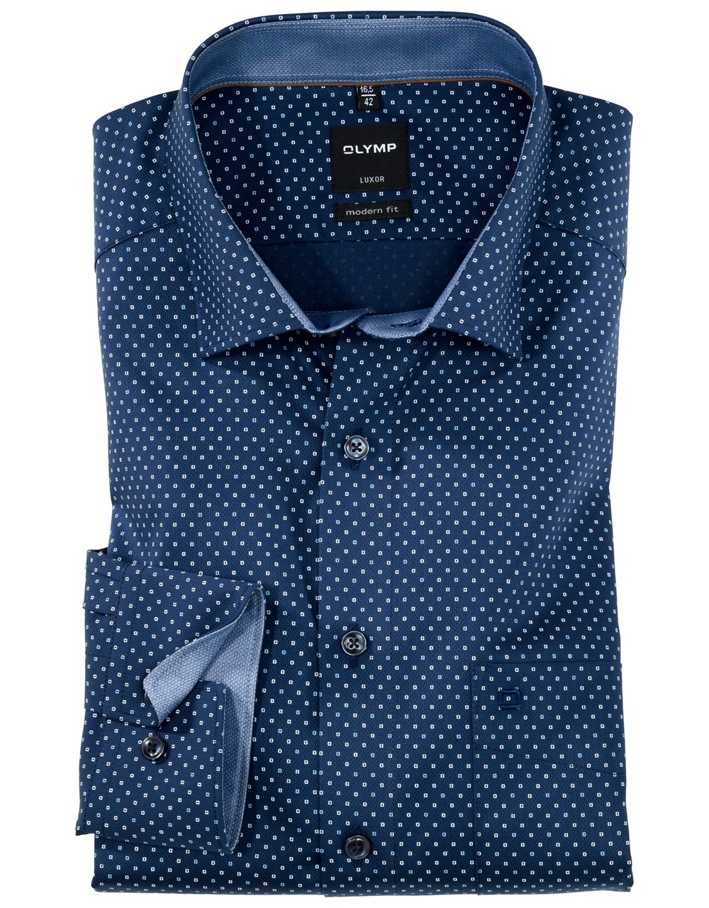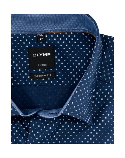 Olymp košile tmavě modrá se vzorkem, prodl. rukáv, modern fit